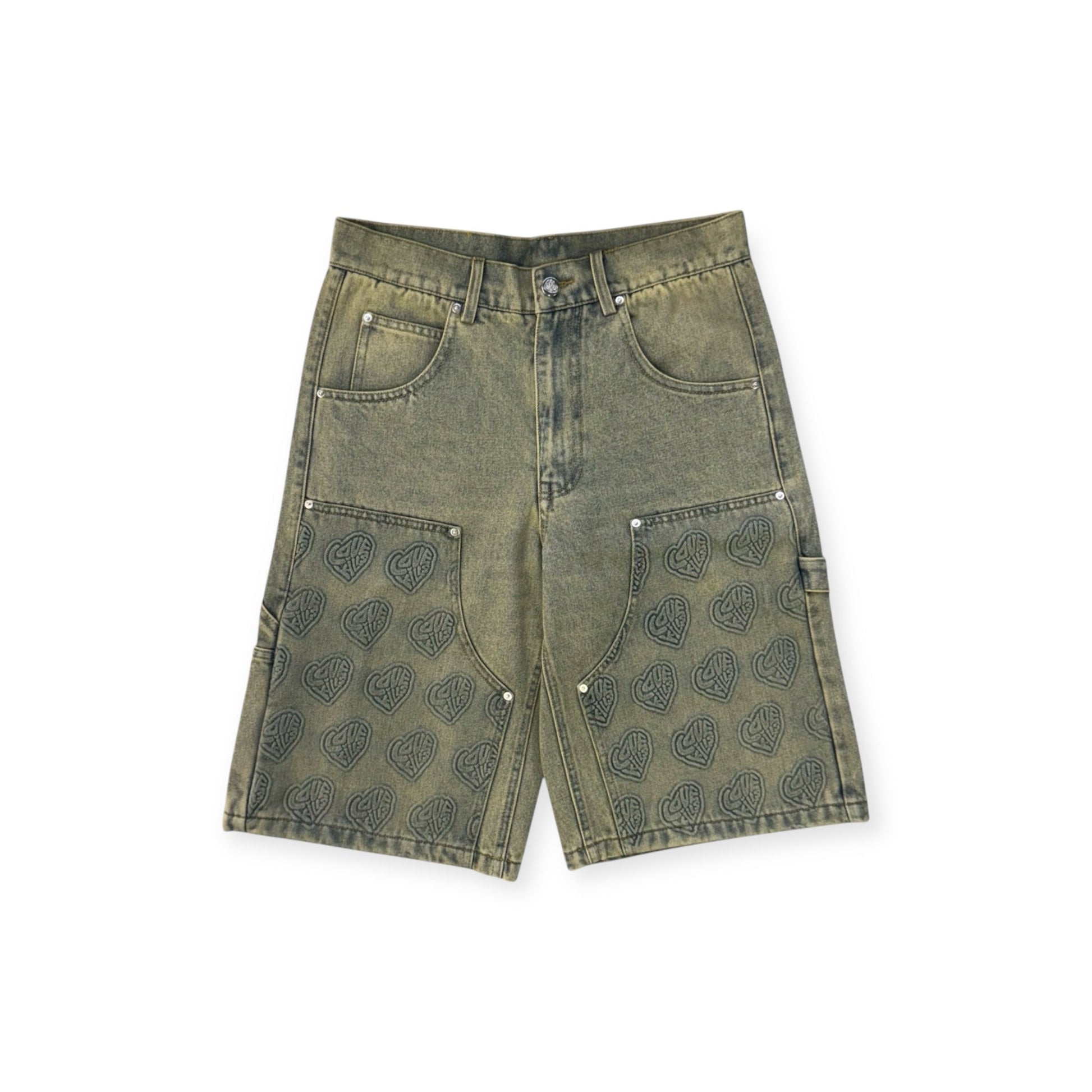 LOVE KILLS EMBOSS DENIM SHORTS
